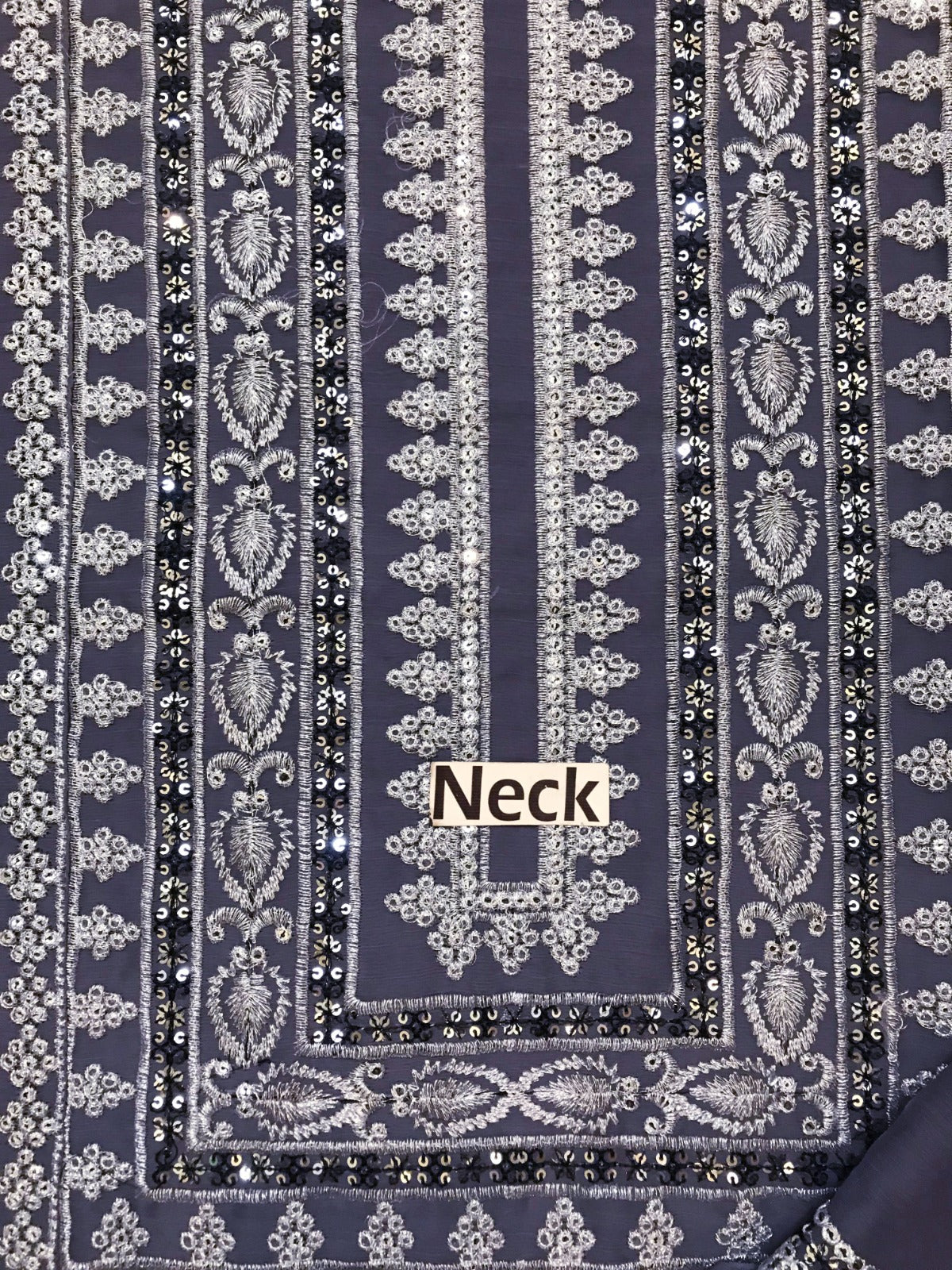 Asim Jofa Chiffon Gray Formal Collection Emb 3piece Unstitched