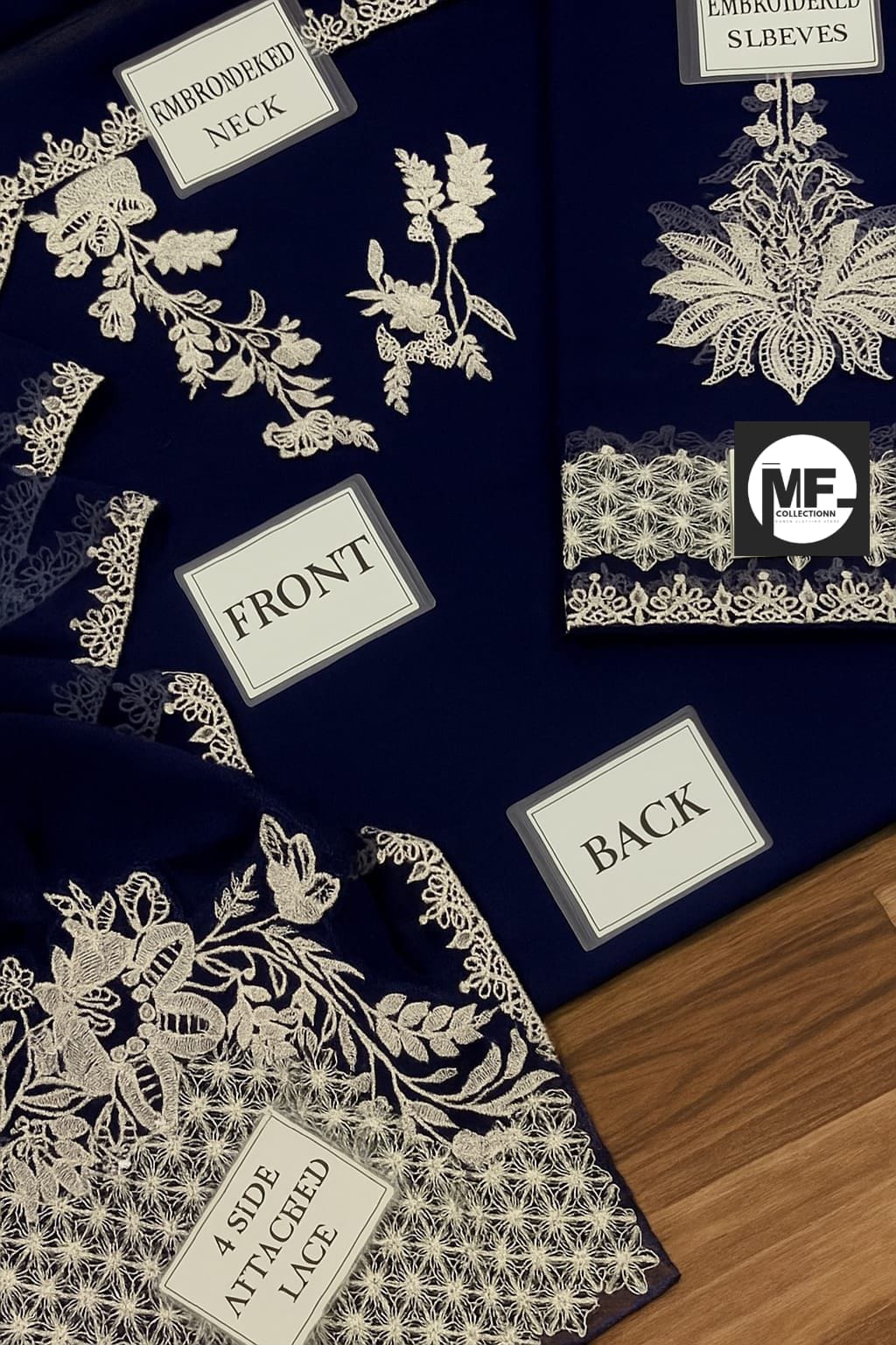 BAROOQUE Blue Chiffon Embroidery 3piece Unstitched