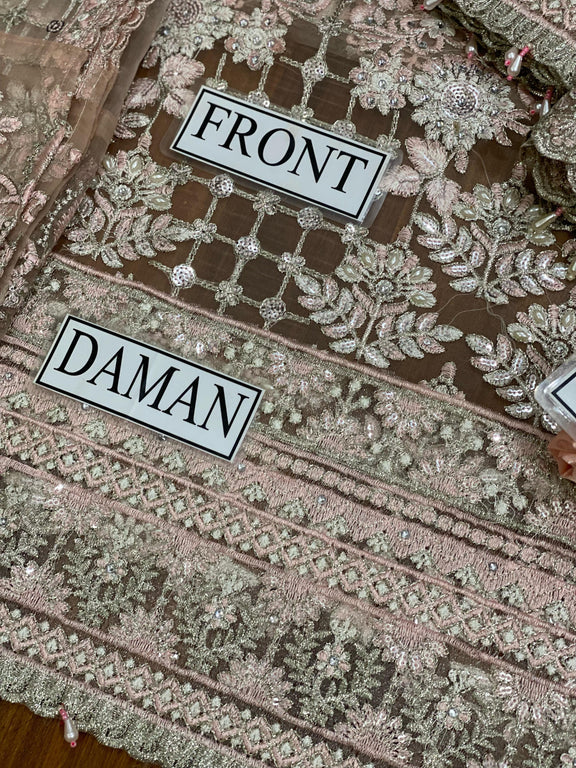 Front Full Embroidered With Sequence Work, Attached Daman With Tussles Attached