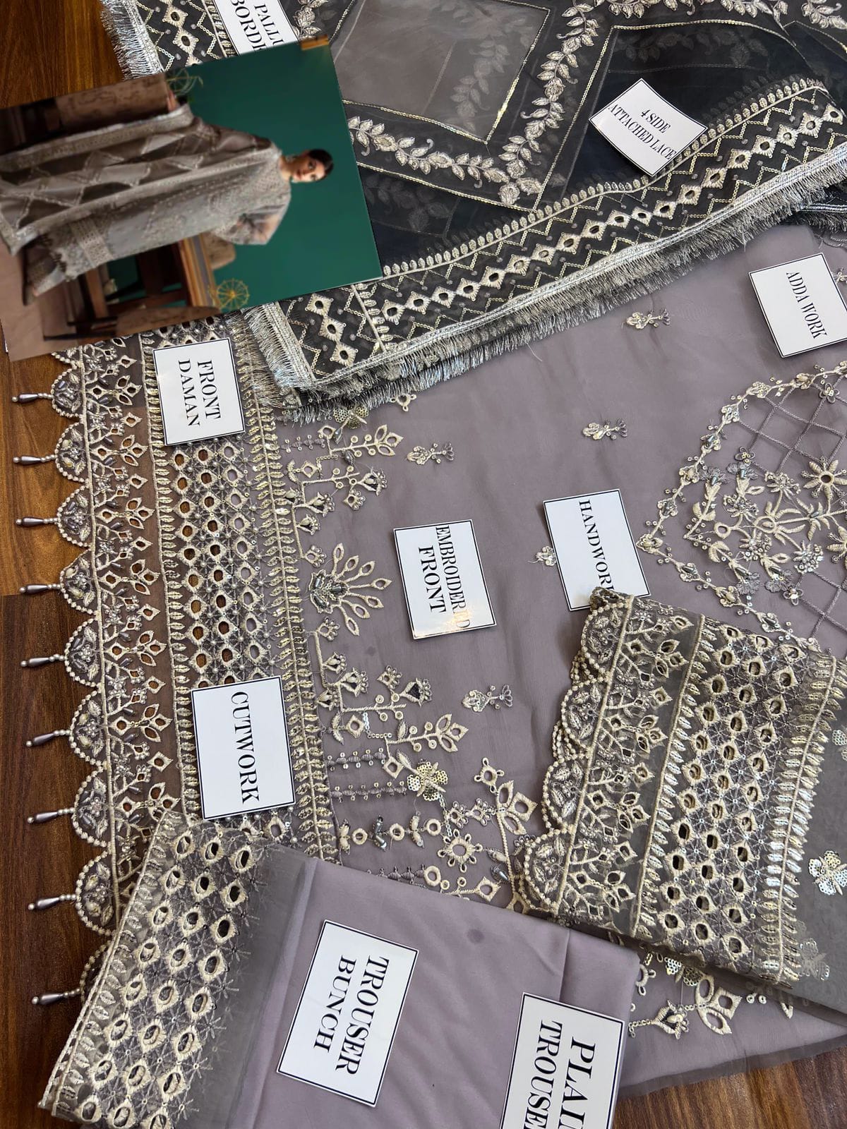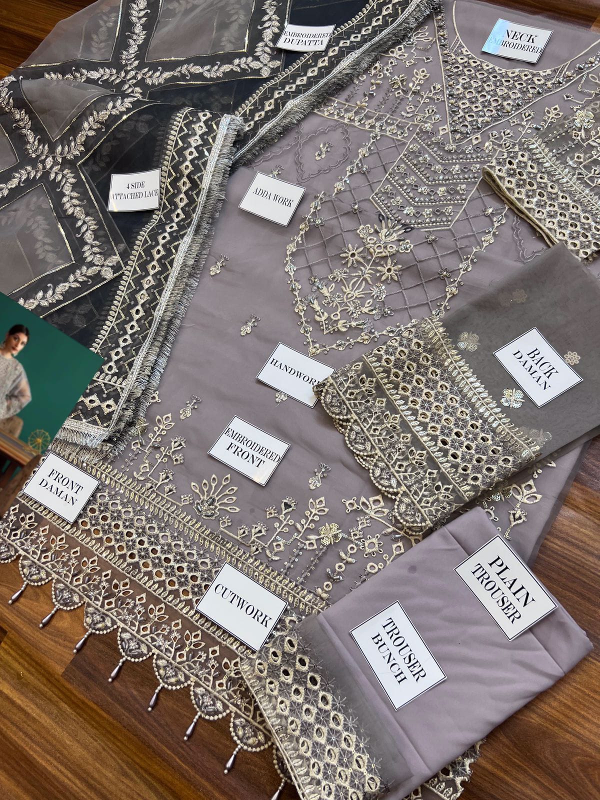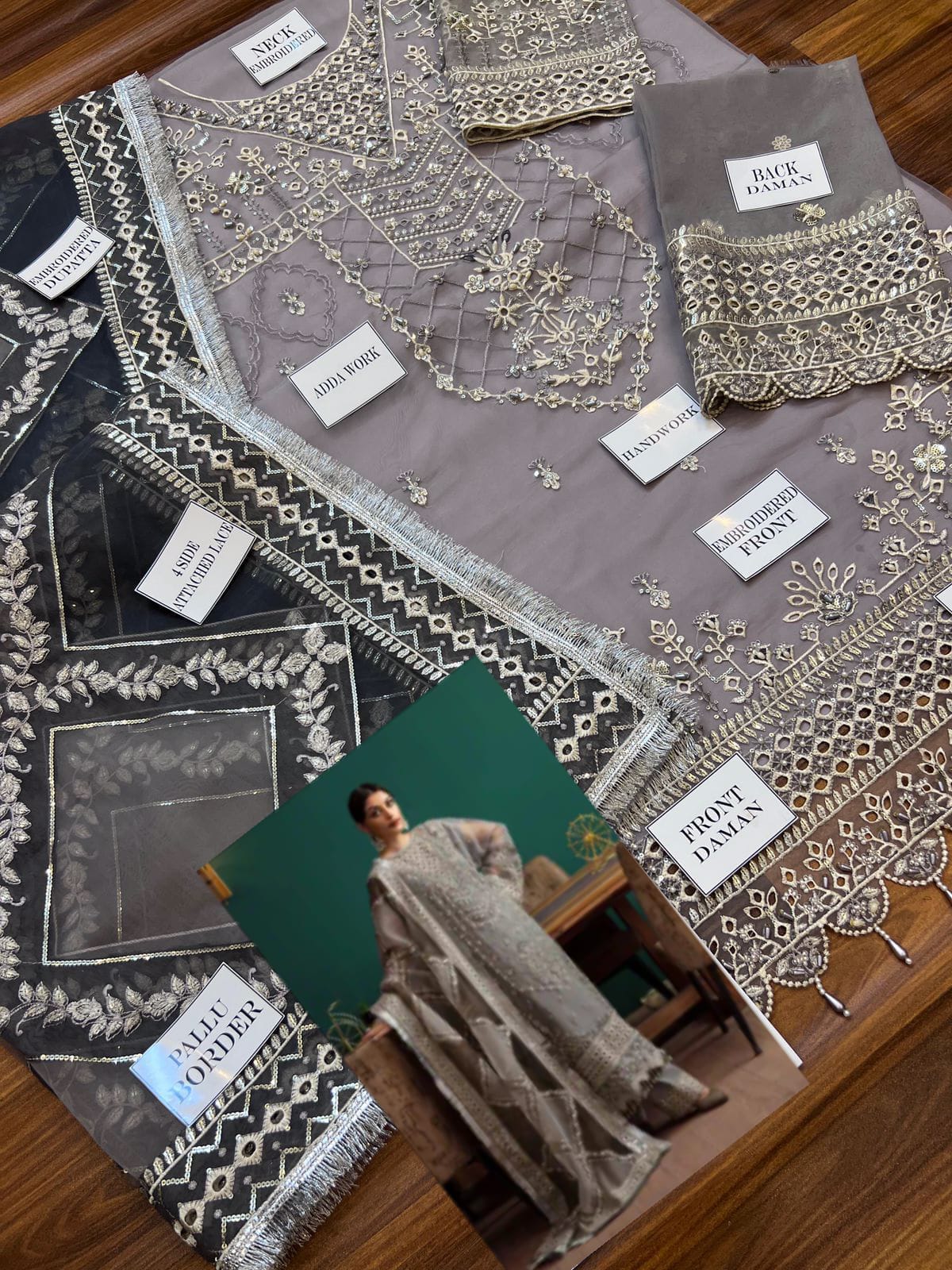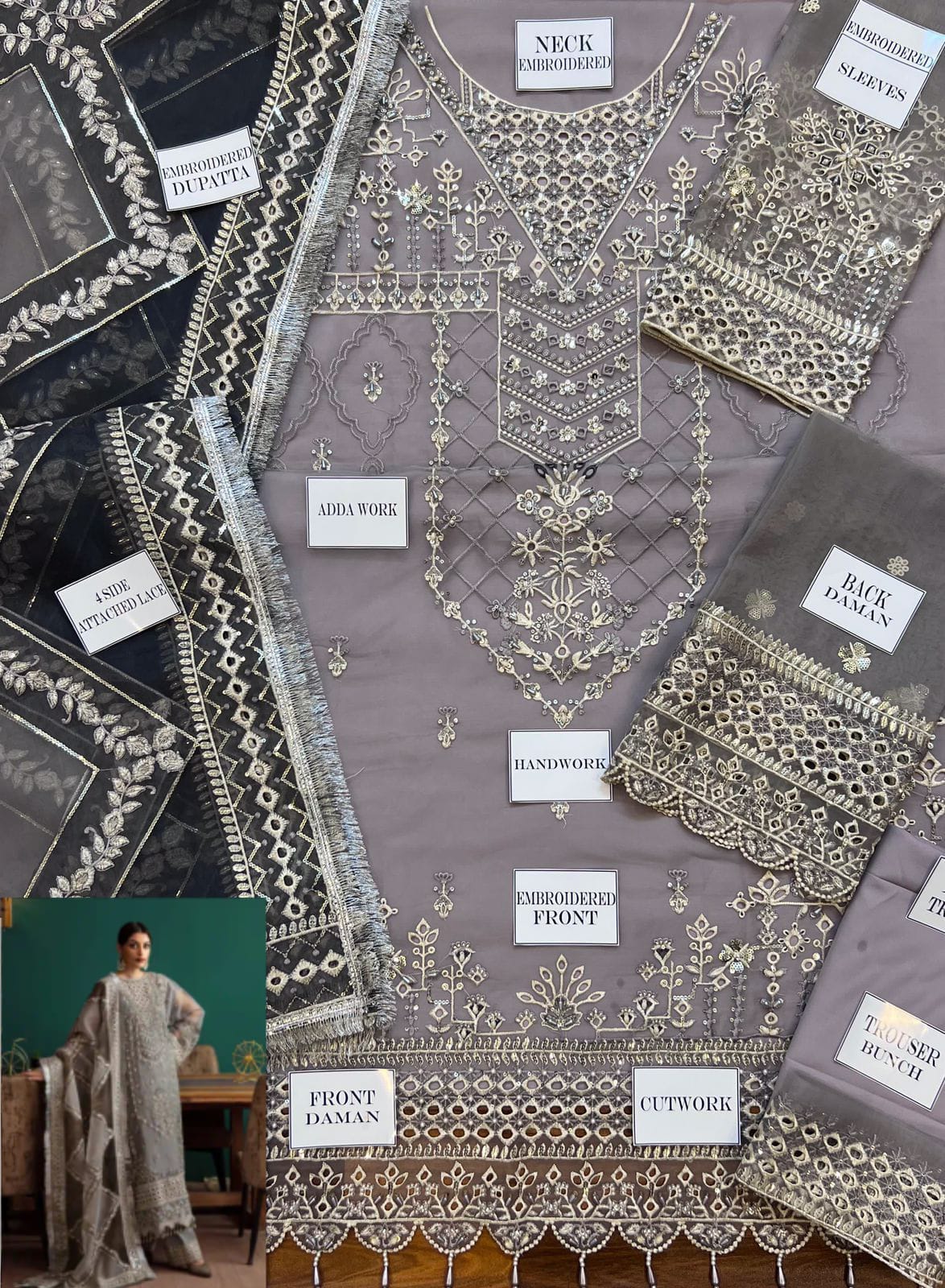 Eleshia Zarin Gray organza Wedding & Formals Collection 3piece Unstitched
