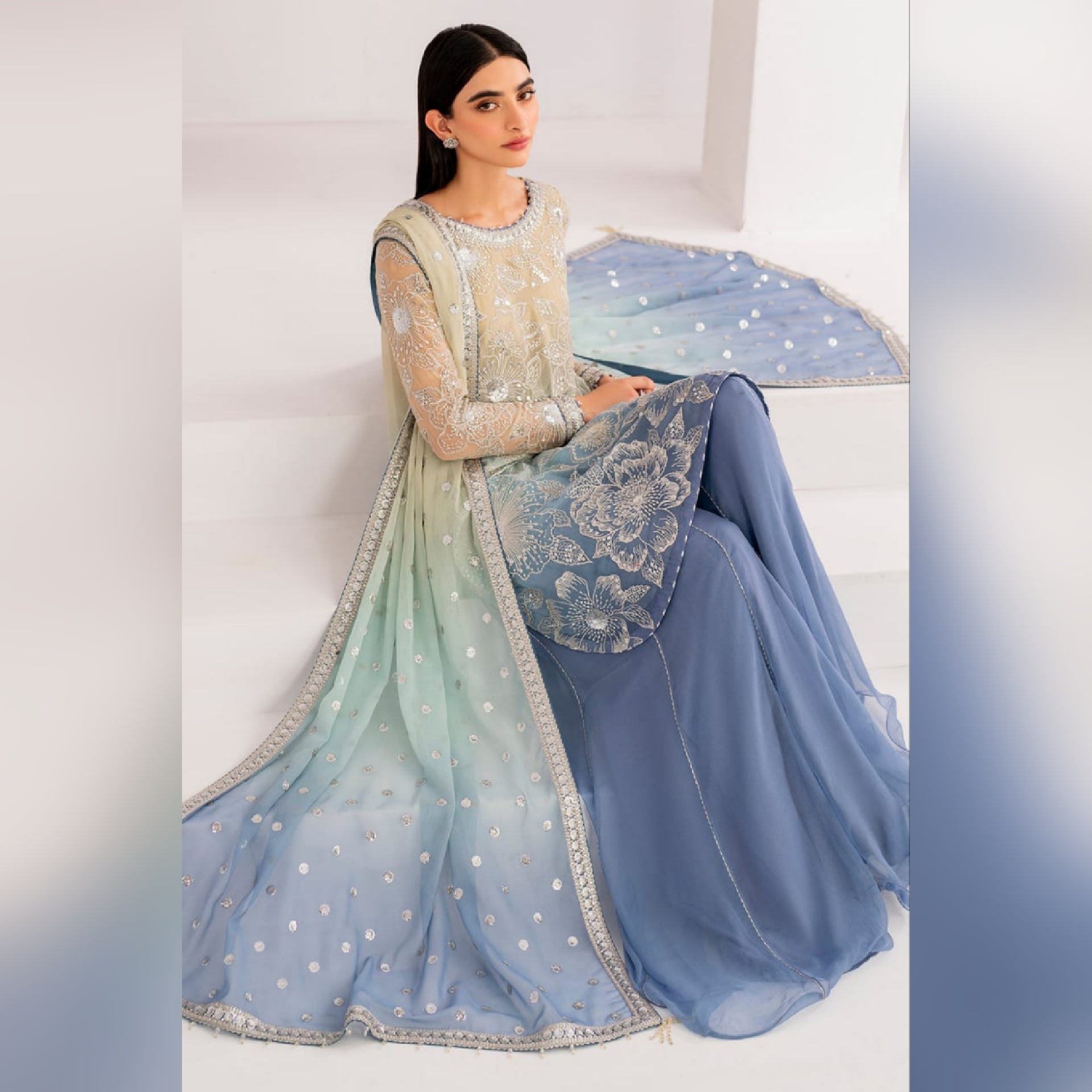 Heavy Embroidered Sequence Work Chiffon Tye & Dye Front