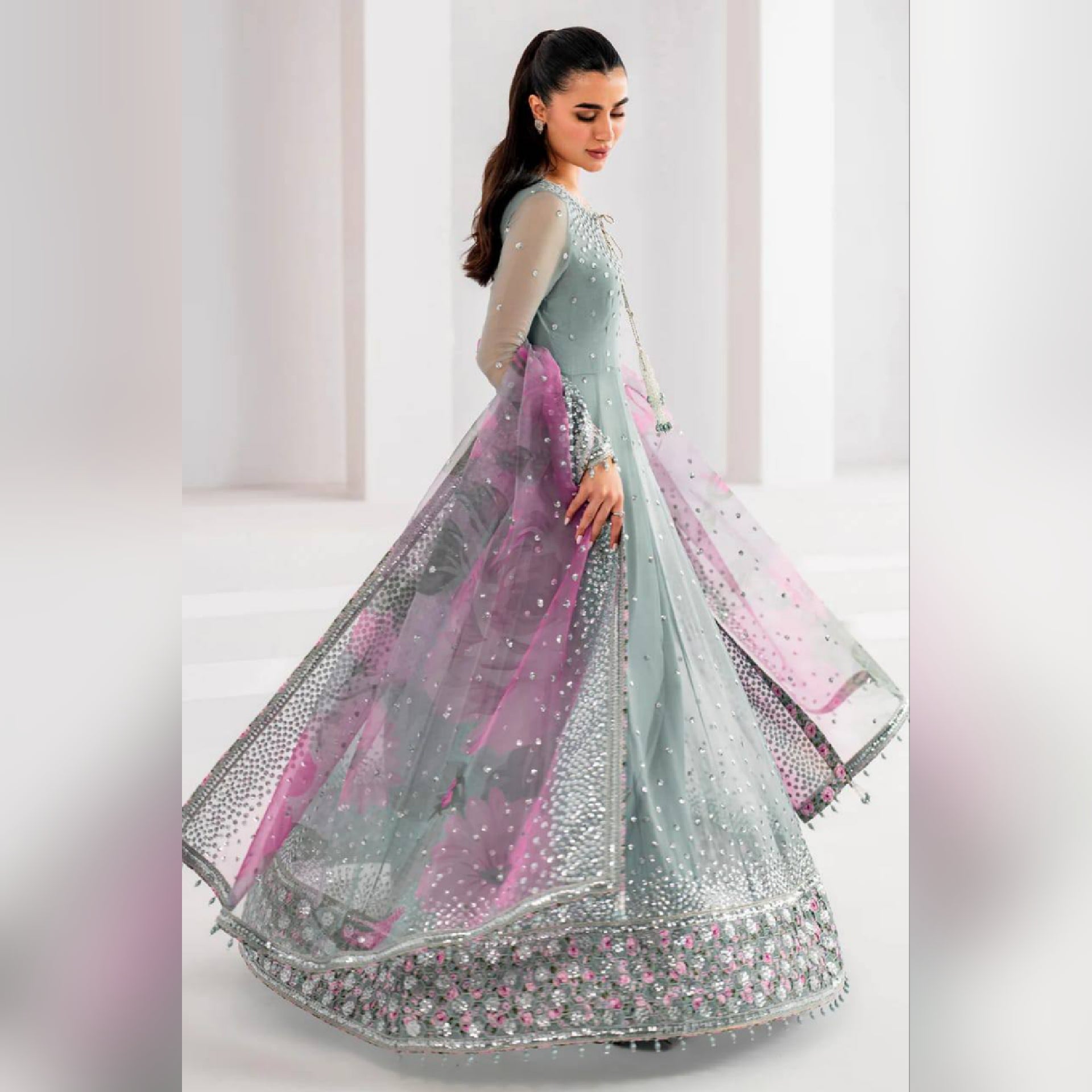 Jazmin Green Chiffon Maxi Wedding Collection Unstitched